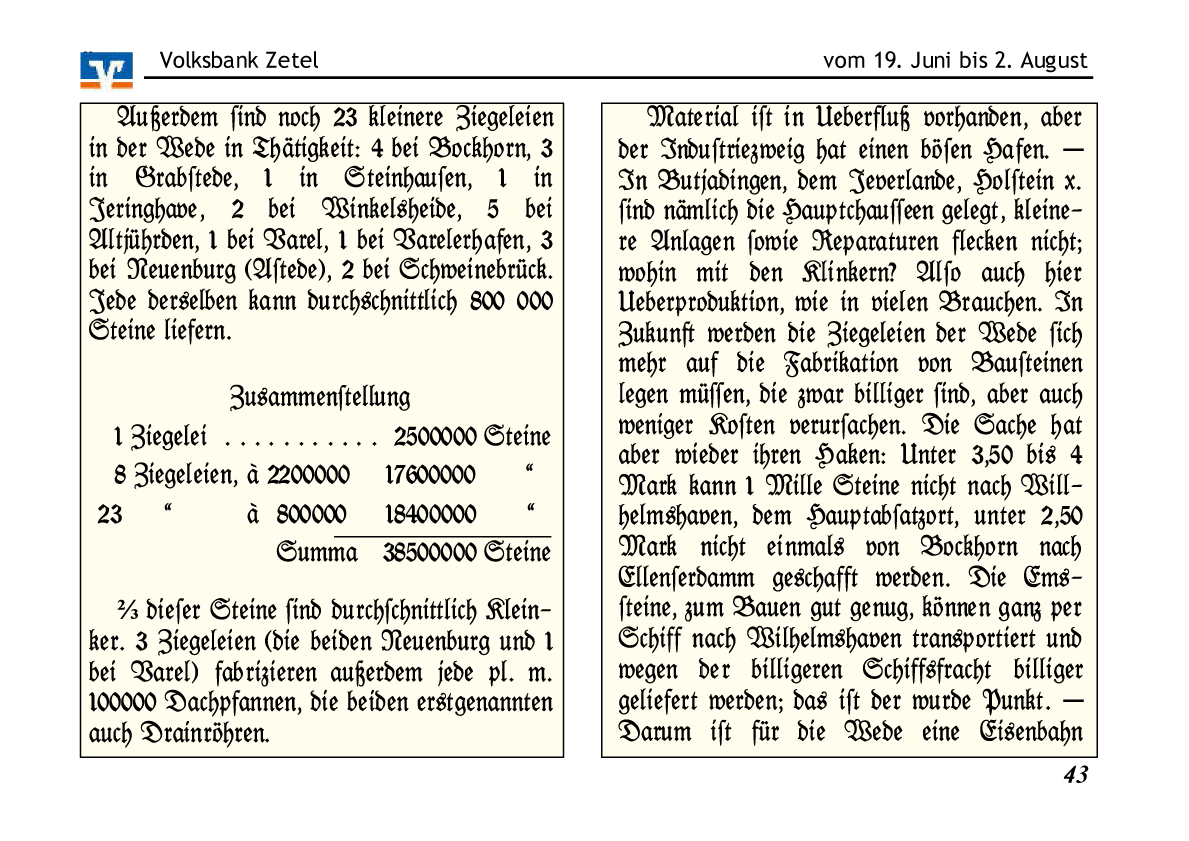 Hausmann B. Ahlers am 12.09.1829 die Brennen der Dachziegel