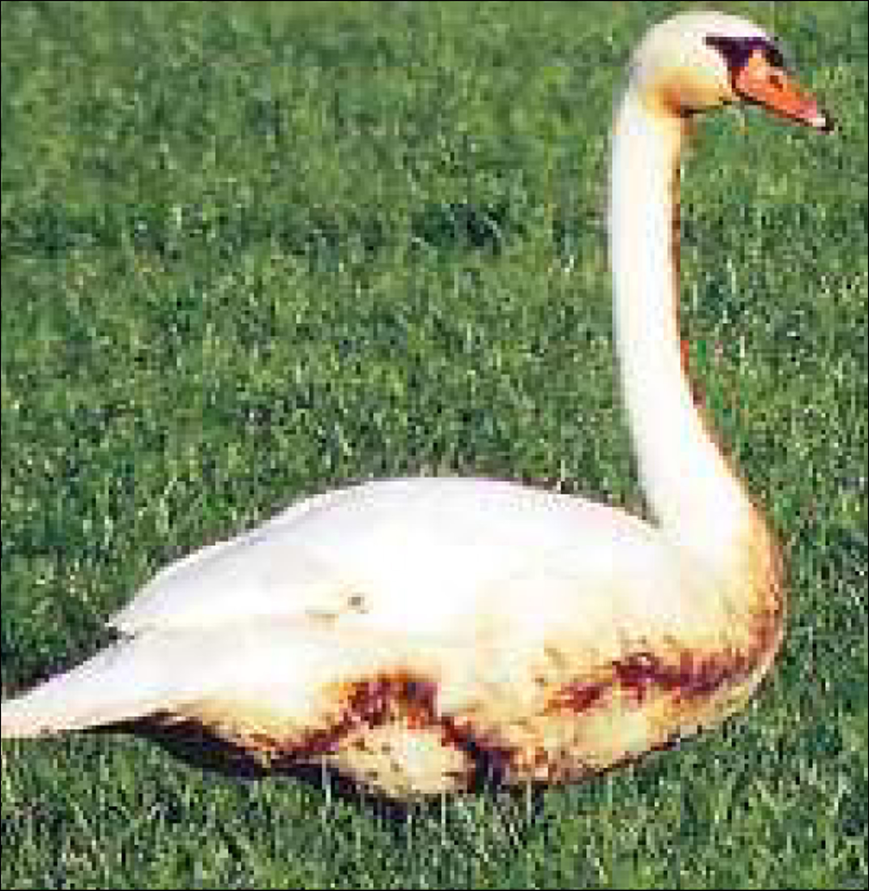 Ein verschmutzter Höckerschwan bei Zetel