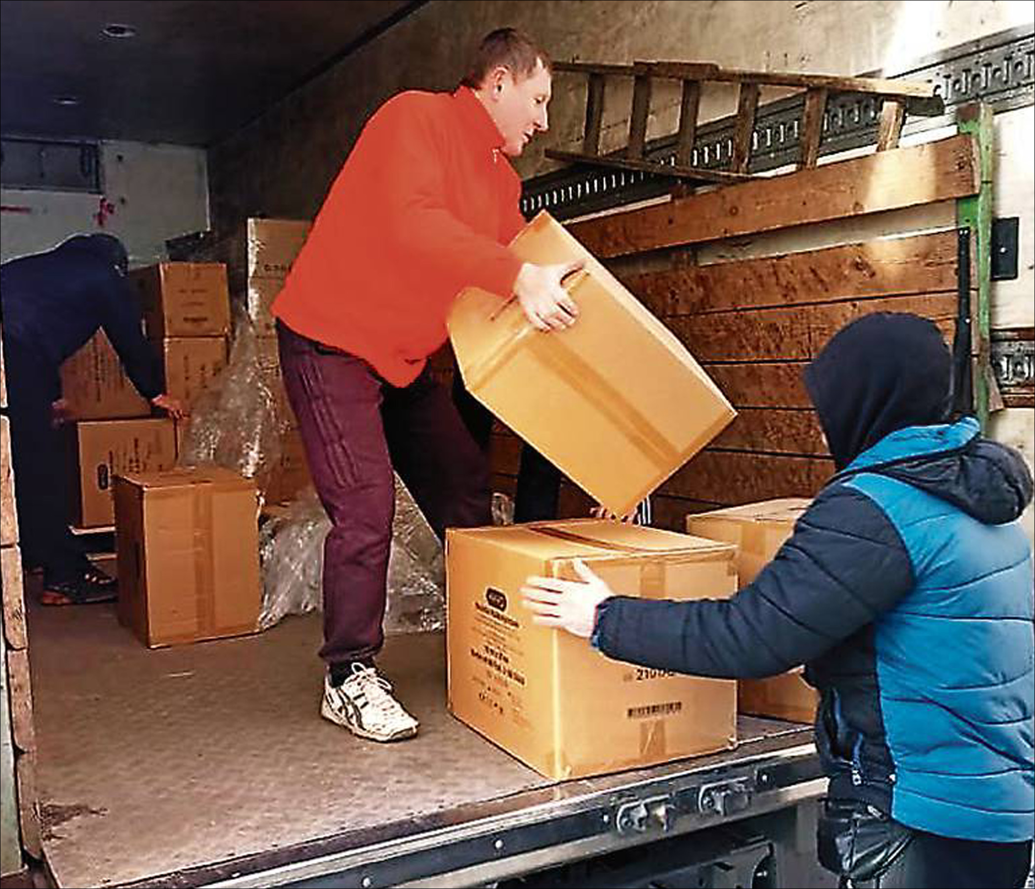 Die Ukrainer haben die Hilfsgüter am Krankenhaus