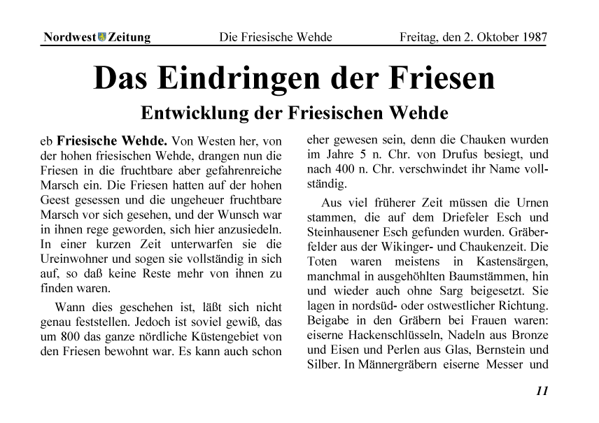 Sturmfluten, die einst die Friesische Wehde betroffen hatten