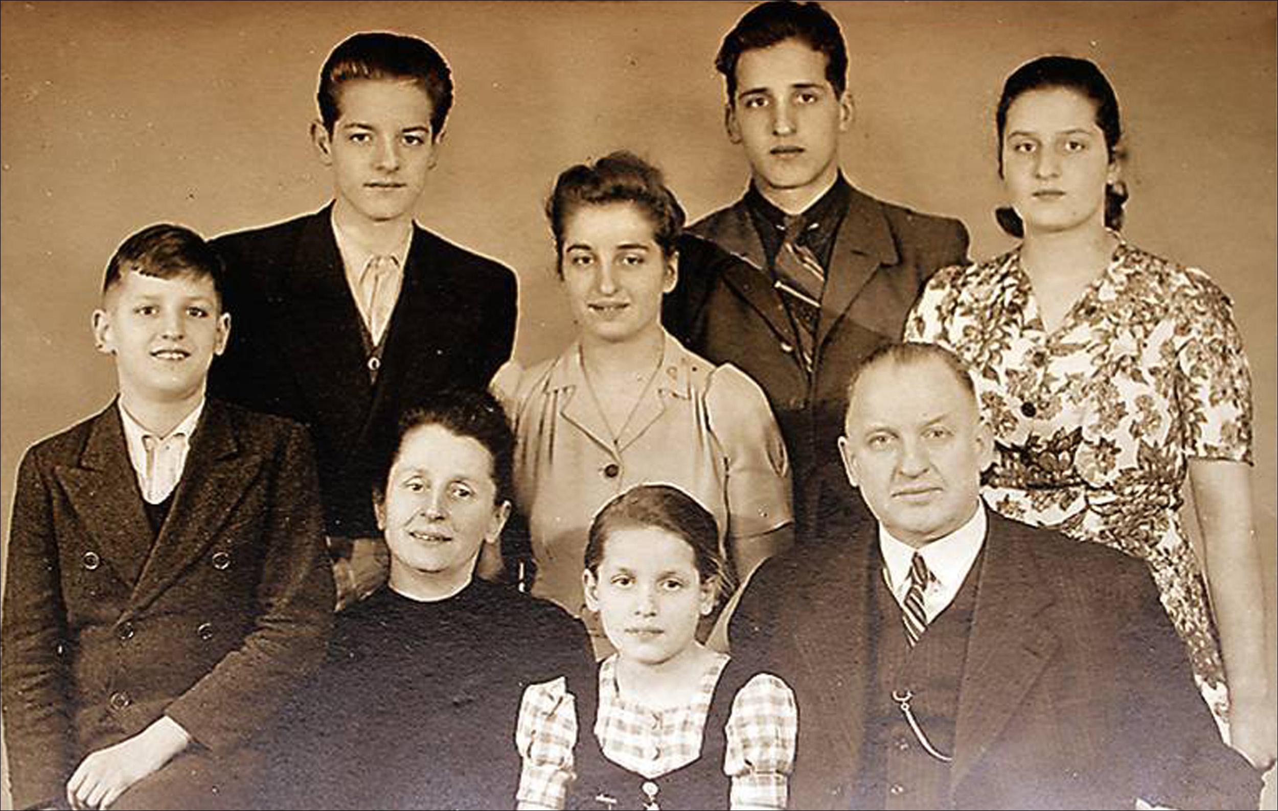 Arztehepaar Behrens um 1948 mit den sechs Kindern